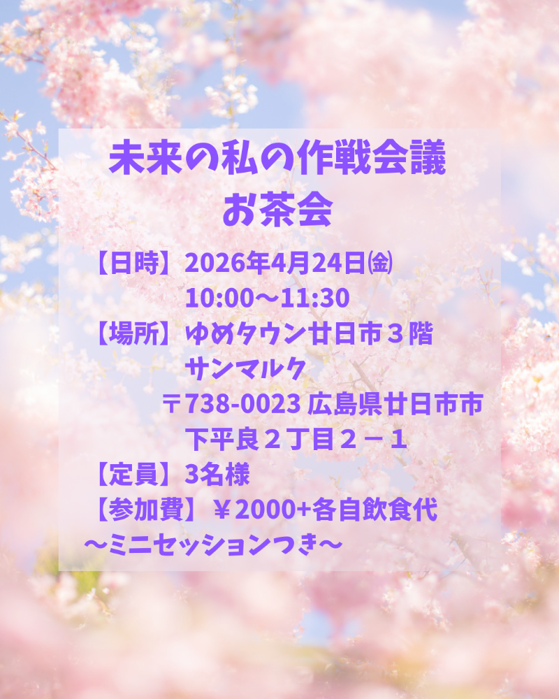 お話しませんか?ミニセッションつきのお茶会です。未来に向けてのヒントもつかみながらあなただけの楽しい作戦会議をしましょう!